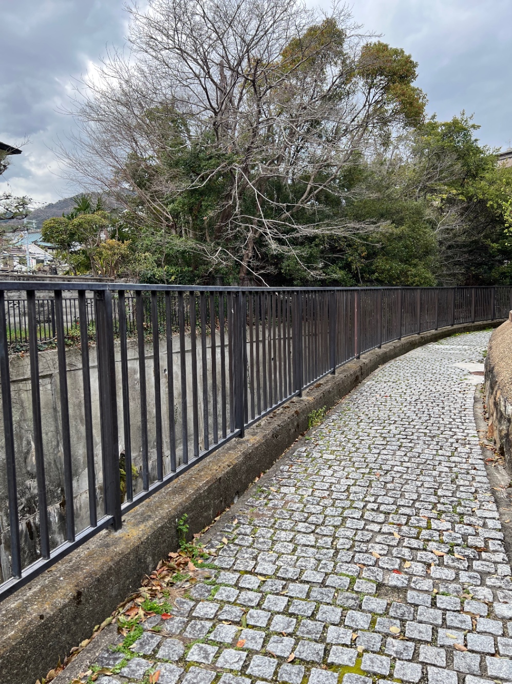 急に結構な傾斜の坂道が、結構な長さであらわれてたじろぐ。老婦人が、歩道沿いの塀に片手をつきつつ、登っていく。
